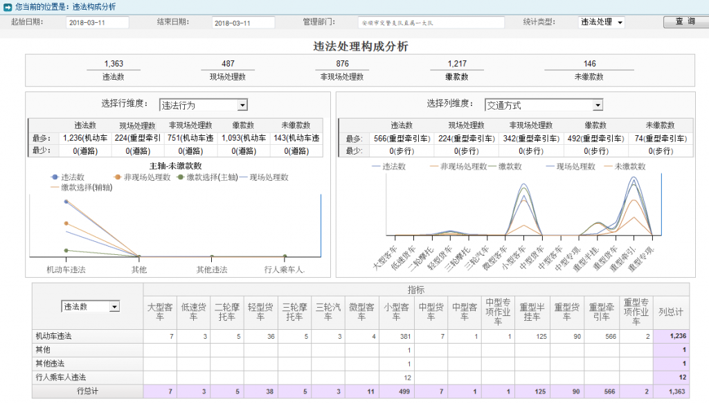 隨著社會的發展,車輛、駕駛人、事故、違法的上升,六合一中的數據越來越龐大,傳統數據的查詢越來越慢。該系統從現有數據中挖掘其潛在的信息,統計數據速度快且直觀,實現綜合查詢、決策支持、風險防范等各種功能,為決策提供有效依據,提高警務決策的及時性和有效性。系統利用數據倉庫技術,整合機動車、駕駛人、道路交通事故、道路交通違法、非現場處理系統、劇毒化學品運輸管理等交通管理信息系統數據資源,構建“數據倉庫”,實現交通管理信息的“集中、整合、共享”,并以多維數據集為基礎,為用戶查詢數據、建立決策報表提供有力的支持,提供固定格式報表生成,生成的數據文件可支持 EXECL 等格式讓,用戶從繁瑣的報表制作中擺脫出來,節省人力物力。