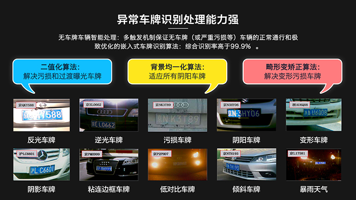 • 看門神KMS-TCC2車牌識別分體機,300w高清攝像機,可識別車輛牌號、顏色等信息,能夠將運動中的汽車牌照從復雜背景中提取并識別出來,識別率可達到99%。 1、極致優化的嵌入式車牌識